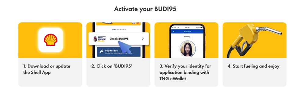 用户只需在 Shell App 中完成 TNG eWallet 的 eKYC 验证,即可通过 Shell App 直接使用 BUDI95 补贴支付燃油费用,实时享受补贴油价。