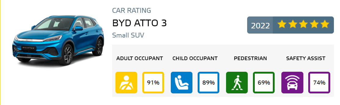 BYD Atto 3 驾驶辅助系统 Euro NCAP 评为 “不推荐“