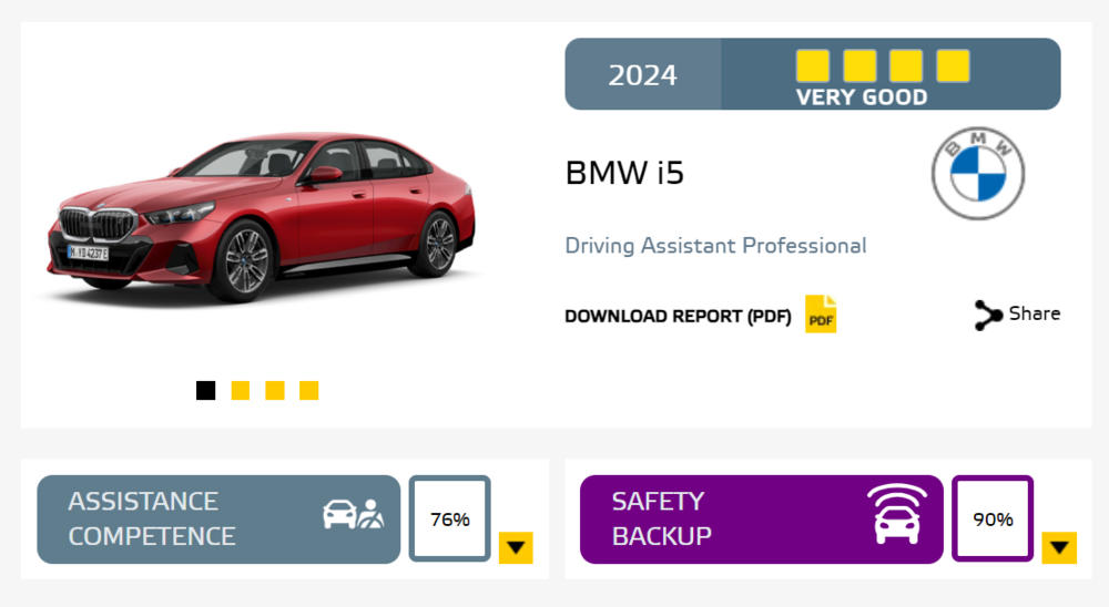 测试中,BMW i5 和 Mercedes-Benz C-Class 皆拿下“非常好”(Very Good)评级。Euro NCAP 指出,两款车子的系统提供了稳定的速度和控制,能减少驾驶员的负担,但不会有过多的干涉辅助,驾驶员可随时重新掌控。