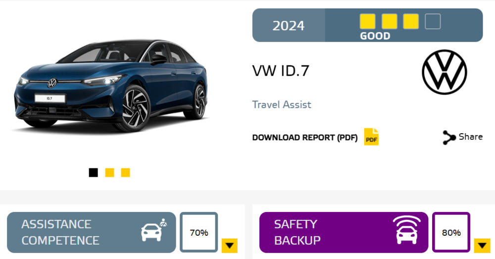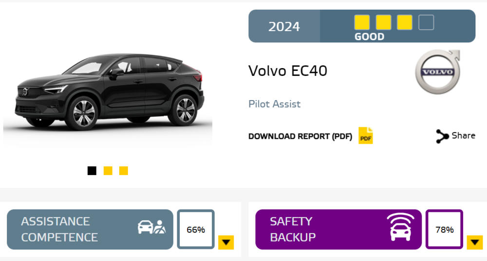 Volkswagen ID.7 和 Volvo EC40 则获得“良好”(Good)评级,Euro NCAP表示因两款车子不具备 BMW i5 和 Mercedes-Benz C-Class 的一些复杂及稳定功能,但整体表现不错。