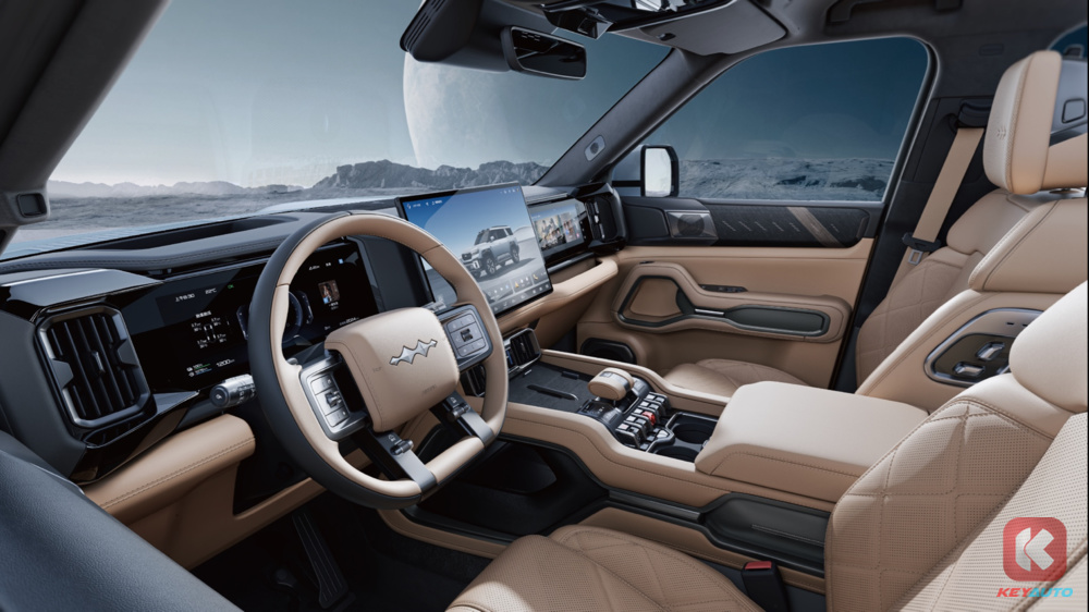 内装的部分,豹 8 搭载 12.3 寸全液晶仪表板、17.3 寸中控荧幕,以及12.3 寸副驾荧幕。其他配备包括 50 寸 AR-HUD、全车座椅电动调节,前排座椅加热及通风功能、全景式天窗、18 具扬声器 Devialet 音响系统、128 色车内氛围灯、主动香氛系统、后排荧幕等。敬请锁定 KeyAuto.my