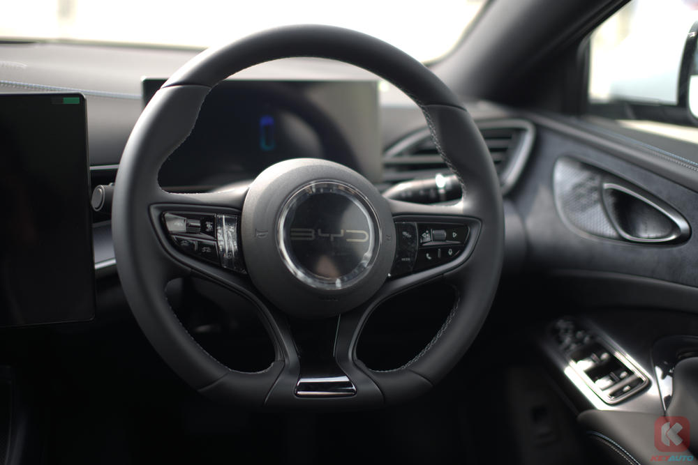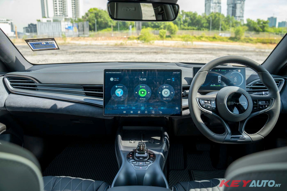 内装的部分基本与BYD Seal Premium 和Performance AWD相同,配备10.25寸数码化仪表板、15.6寸可旋转中控荧幕(支持Apple CarPlay与Android Auto)、全景式天窗、前排电动调节座椅功能、12具喇叭的Dynaudio音响系统和PM2.5空气净化功能,但不提供座椅调整记忆功能,座椅从皮革改位人造皮革,同时也取消了HUD抬头显示器。