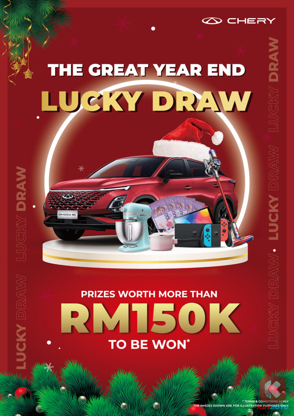 "Many shoppers often look forward to December to shop and celebrate their holidays with friends and family. At Chery we want to add a touch of excitement to their year-end festivities by introducing this special lucky draw,” said Chery Auto Malaysia vice president Michael Chew.