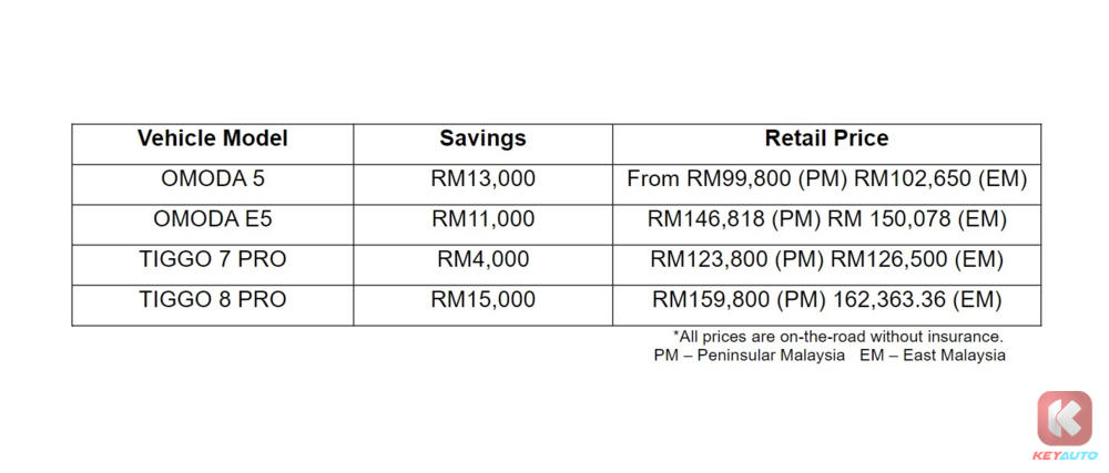 Through the year-end special promotions offer, customers can enjoy savings of up to RM13,000 on Chery’s Omoda 5, while the all-electric Omoda E5 comes with savings of up to RM11,000.