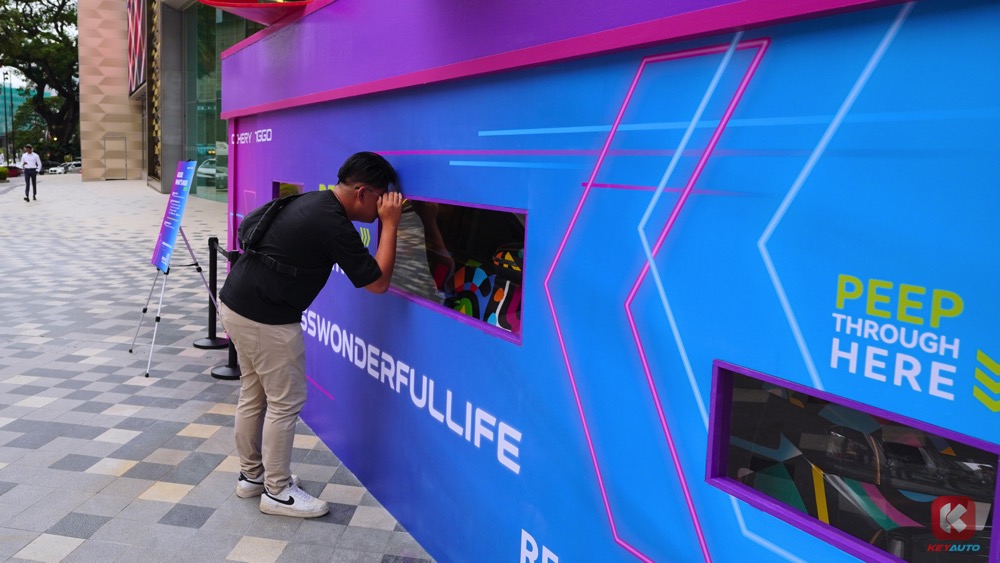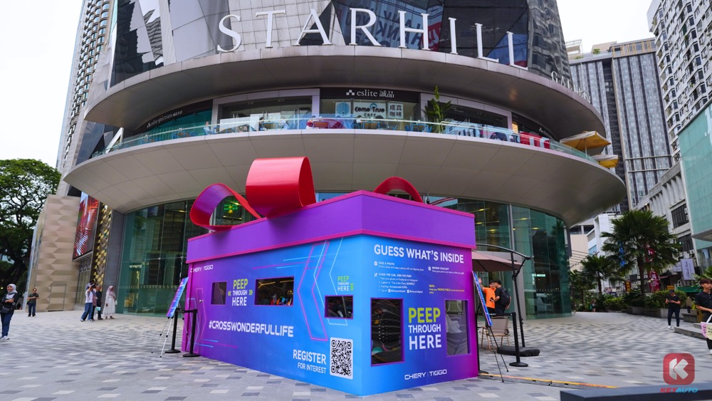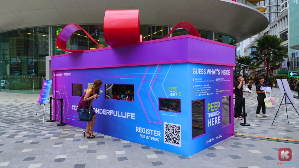 Chery Malaysia 在吉隆坡繁华商圈 The Starhill 商场前展出巨型集装箱,紫蓝色的外观配上红色丝带,瞬间称为全程焦点!