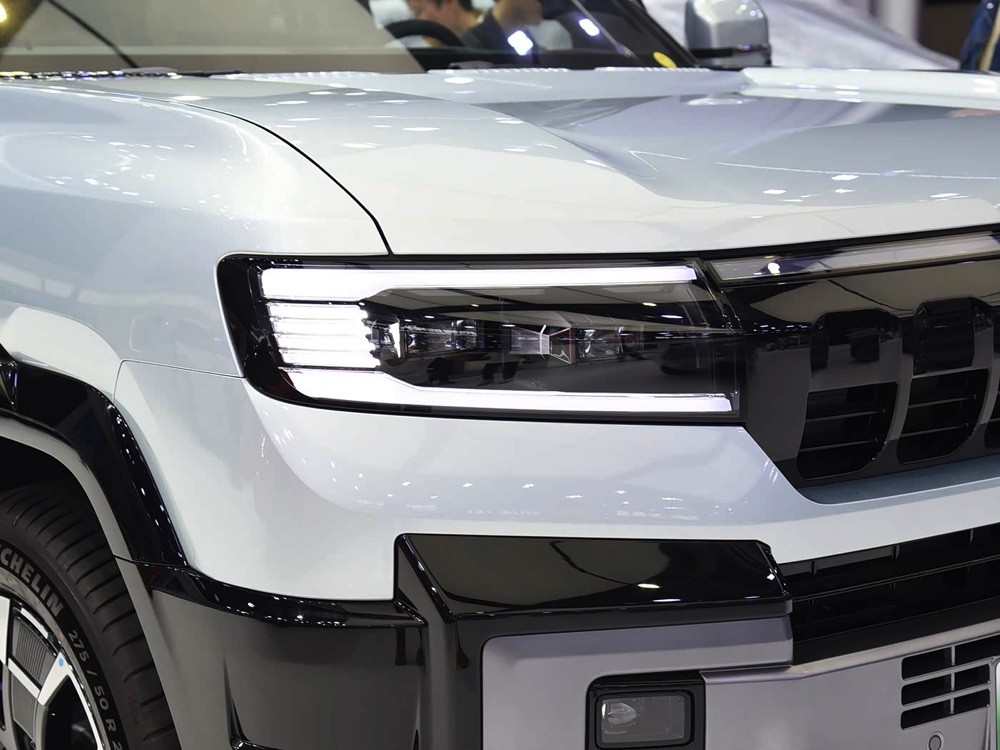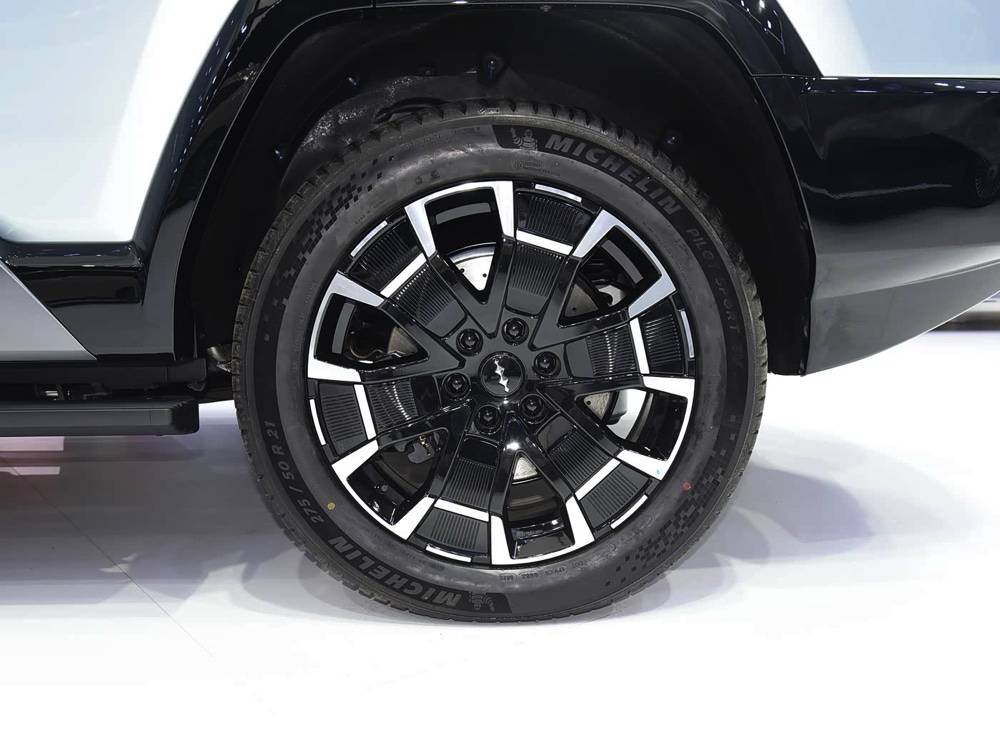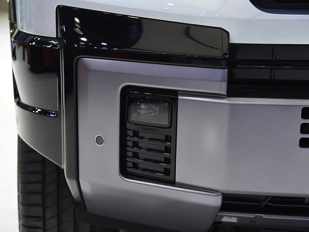 车子采用 “未来星舰美学”设计,半封闭式的水箱护罩,上方是黑色饰板,下方是网状设计。配上 LED 头灯、硕大的保险杆、隐藏式门把、黑色轮拱以及 20 寸轮圈,整体看来更强悍。