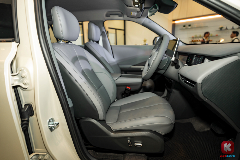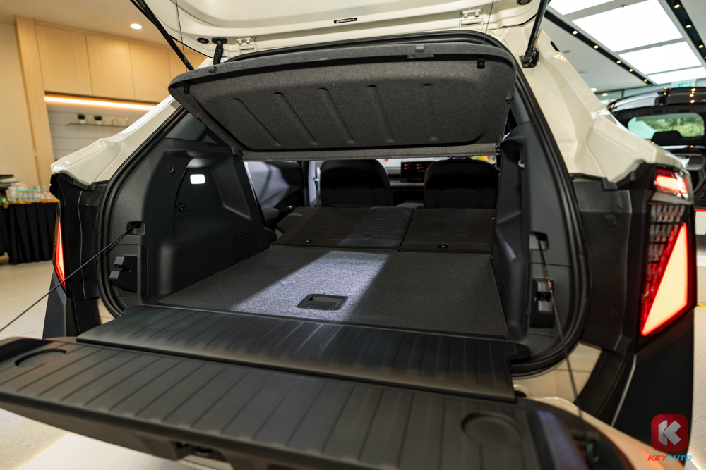 内装配备了 8.8 寸数码化仪表板、12.8 寸中控荧幕、有线/无线 Apple CarPlay 和 Android Auto、手机无线充电面板、前排座椅 6 向电动调节、驾驶座通风功能、单区自动恒温冷气系统(带PM2.5 空气过滤器)、车内氛围灯、上下开启式电动尾门等。