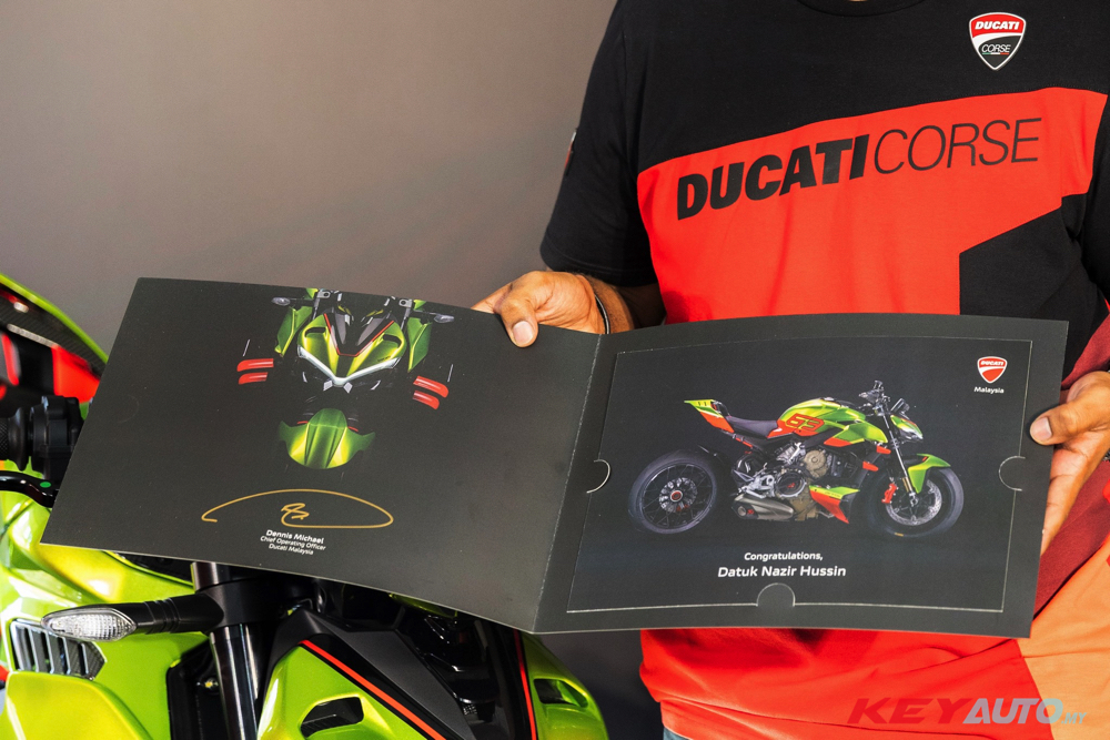 Ducati Streetfighter V4 Lamborghini 正式登陆大马,新车售价为 RM460,900,全球限量 630 台,本地只获得 2 台配额,其中一台已交车给幸运车主 Datuk Nazir Hussin。