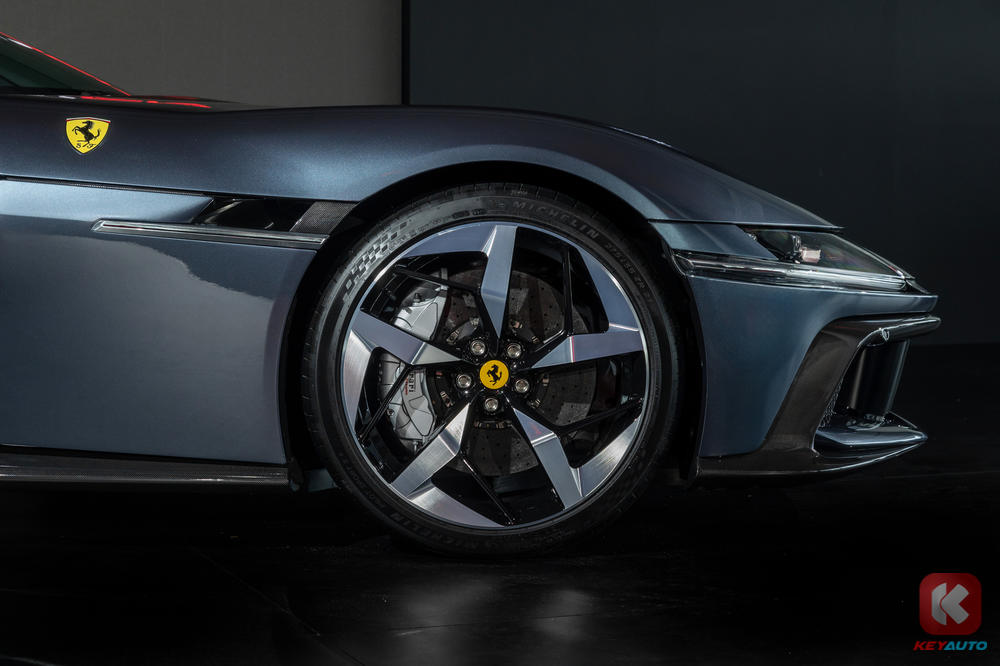 Rolling on 21-inch rims the 12Cilindr Spider can be fitted with Michelin Pilot Sport S5 or Goodyear Eagle F1 Supersport tyres - both of which were developed in a new size for the Maranello company: 275/35ZR21 at the front and 315/35ZR21 at the rear.