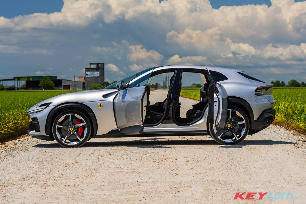 The Purosangue offers class-leading performance figures (from 0 to 100 km/h in 3.3 s and from 0 to 200 in 10.6 s); the driving position and the heady, naturally-aspirated V12 soundtrack deliver an entirely new yet also entirely Ferrari driving experience. The fact that a vast array of comfort-focused content is provided as standard, such as the Burmester© audio system, and that the many optional extras including the brand-new Alcantara® upholstery, derived from certified recycled polyester, make the Purosangue the most complete four-door, four-seater in the segment.