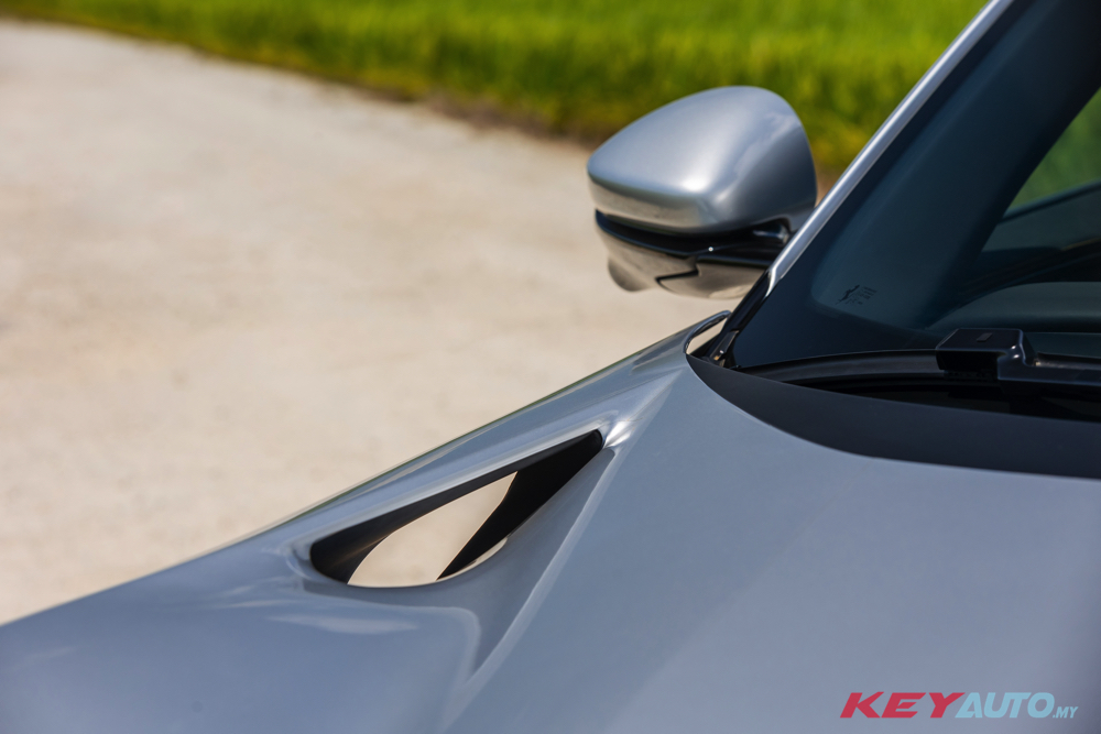 The unconventional location of the headlights made it possible to create two air intakes above and below the DRL. The upper one is used to channel air into the complex blown system which vents underneath the front aerobridge. The lower one, on the other hand, is used to channel air to the brake cooling system. The design of the vertical outside surfaces of both air intakes includes an air-catcher which maximises the quantity of air channelled through them.