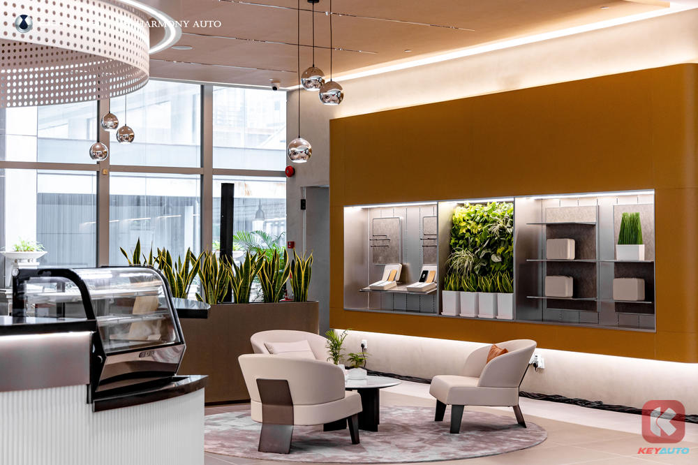 It can showcase up to six vehicles and is equipped with a premium customer lounge that is integrated with digital displays and interactive screens. Other premium comforts includes a coffee bar and a merchandise counter.