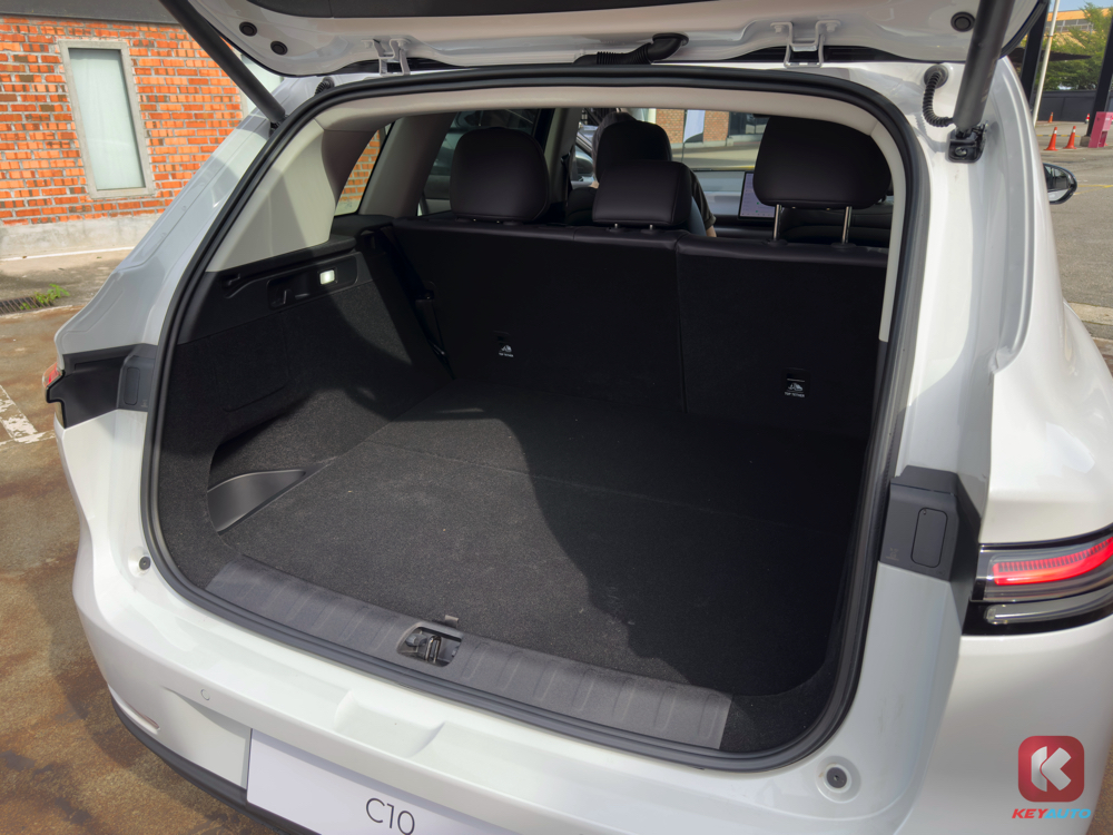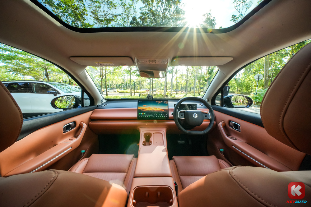 先来介绍 C10这台D-Segment SUV,其车身尺寸与 Mazda CX8、Proton X90 等 7 人车相仿,但 C10 却采用 5 人座布局,无论是前排还是后座,都能拥有超大的车内空间。不过,开着车身长度接近 5m 的SUV 穿梭在城市中却是毫不费力,只因这是一台电动车。