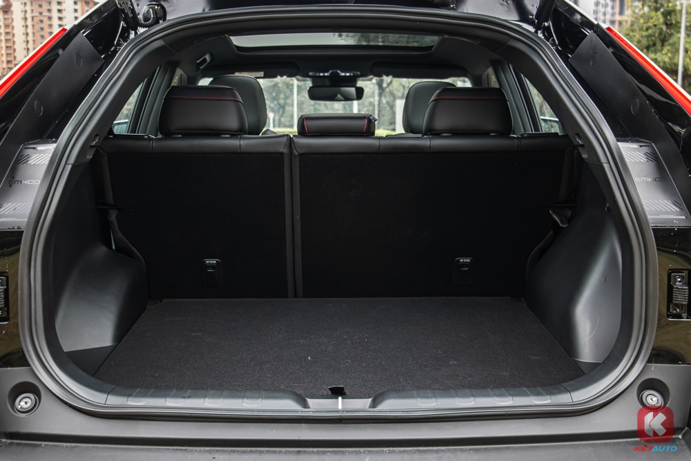 后车厢的承载力也是同级车型中的佼佼者,一般 C-SUV 的后车厢空间为 600L,但 Emkoo 的后车厢空间 高达 638L,放倒后座椅背后可扩展到 1,586L。