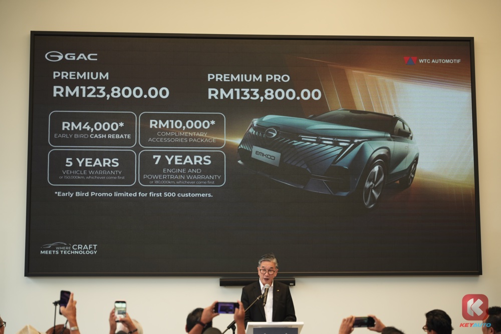 广汽传祺(GAC)大马总代理 WTC Automotive(M)Sdn Bhd 正式在大马推出 GAC Emkoo,分为两种车型,Premium (售价 RM123,800)和 Premium Pro(售价 RM133,800)。