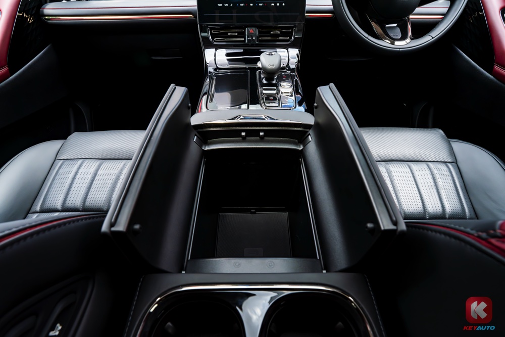 车内采用真皮内饰以及一系列豪华配件,包括第二排一键倾倒的总裁椅、Yamaha 高级音响系统、第二排和第三排座椅配有长达 480mm 的滑动轨道、108 处隔音点、无风感空调系统。