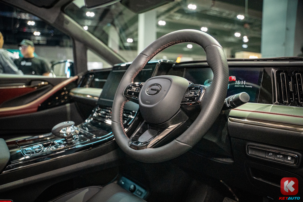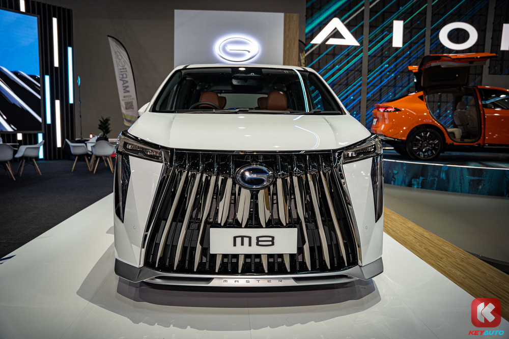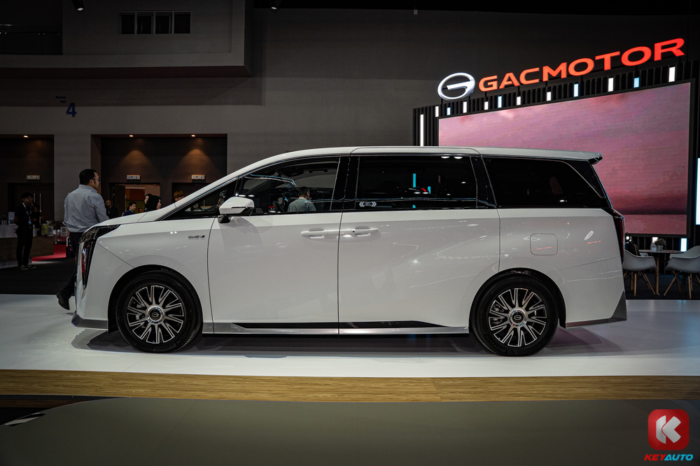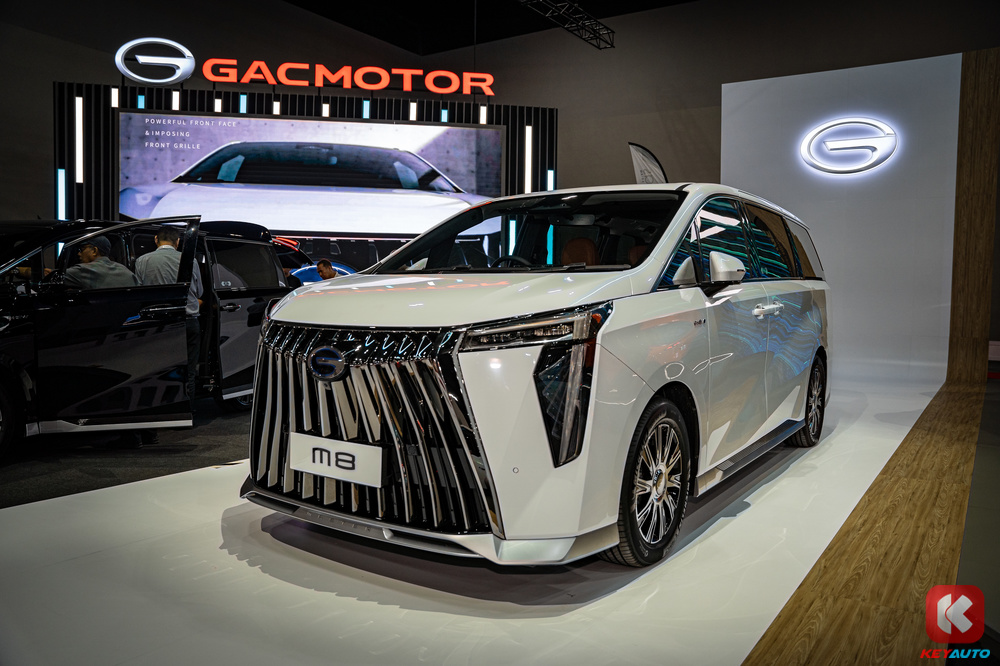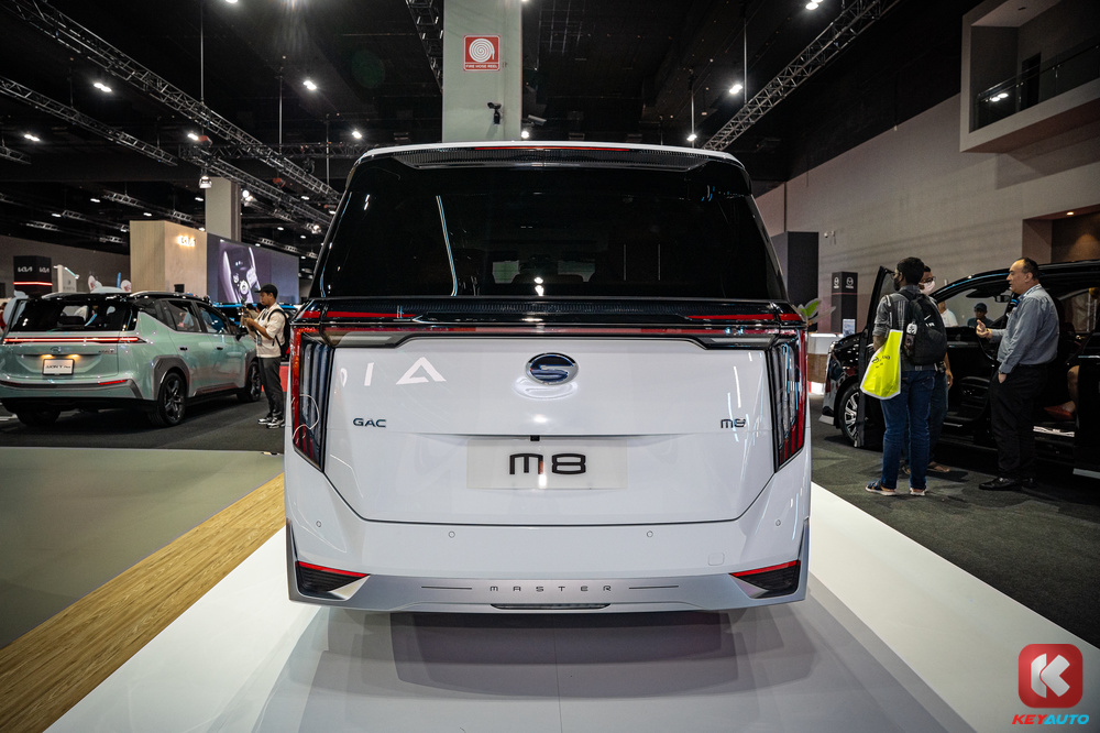 广汽(GAC)带来右驾版插电式混合动力(PHEV)车型的 M8,车子采用 2+2+3 的七人座布局,尺寸比 Toyota Alphard 更大一些。