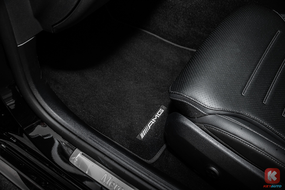 内装也一样换上了 AMG Line 动化配件,包括 Nappa 皮革运动方向盘、踏板和地毯等等。