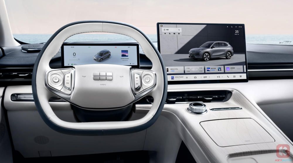 内装设计与外观统一,主打简约风格,配有10.2寸数码化仪表板和15.4寸萤幕主机,采用魅族开发的Flyme Auto界面系统。冷气出风口采用贯穿式设计,储物空间设在中央鞍座下方,整体设计简洁明了。除了入门级的远航版,其余四个等级都配有16支喇叭的高阶音响系统。
