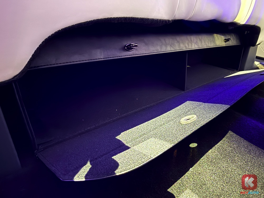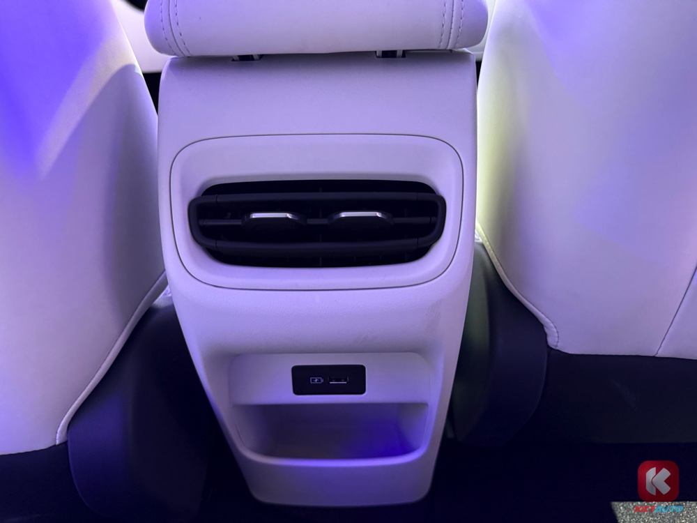 车内搭载了 8.8 寸数码化仪表板、14.6 寸中控荧幕、50W 手机无线充电面板、Flyme 音响系统、256色车内氛围灯、后座冷气出风口等。值得一提的是,车内有多处收纳空间,包括与 e.MAS 7 相似的后排座椅下方收纳空间、车尾箱 375L、前备箱 70L 等。