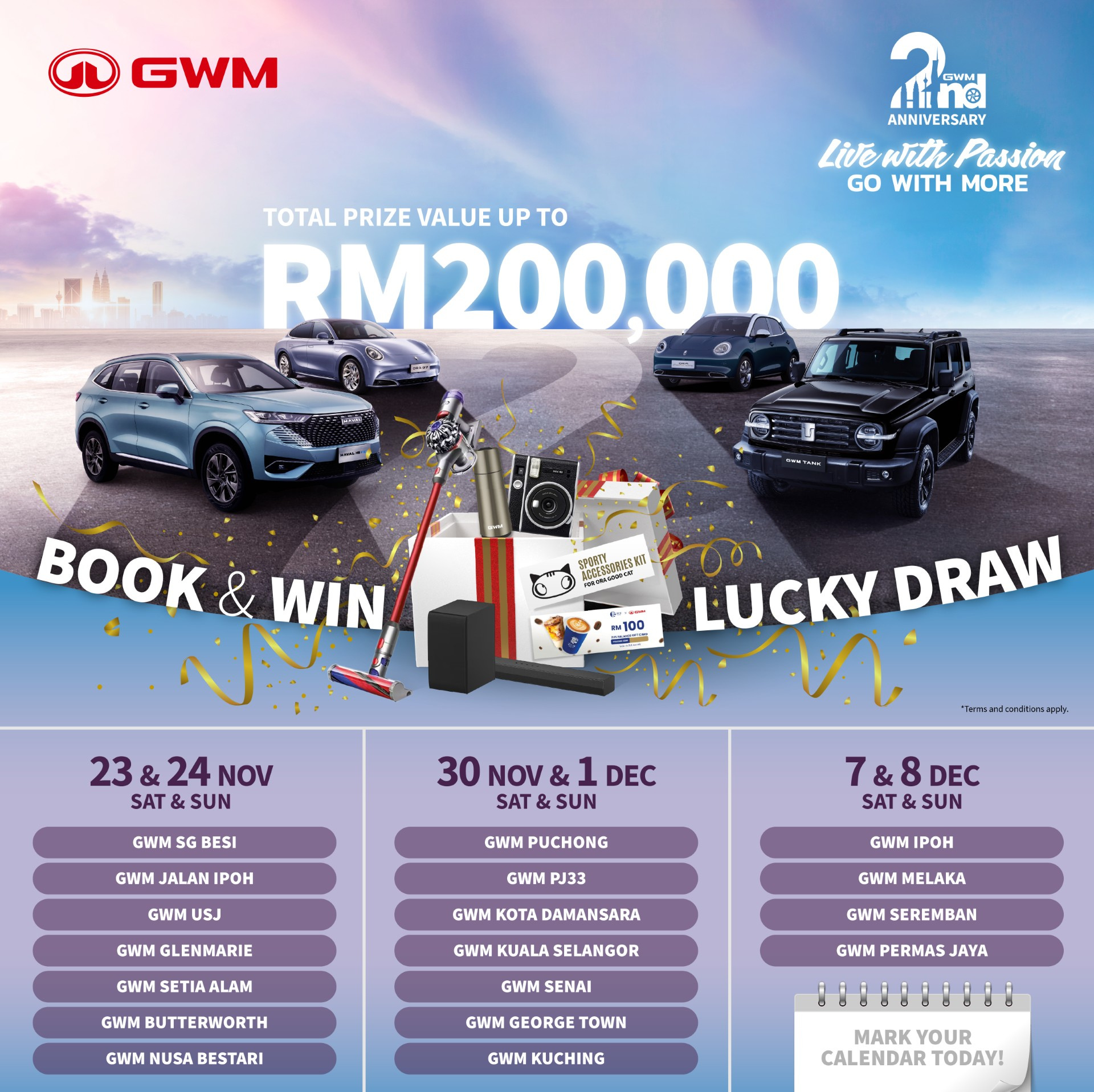 大马 GWM 欢庆 2 周年送福利,试驾赢奖,折扣高达 RM25K!