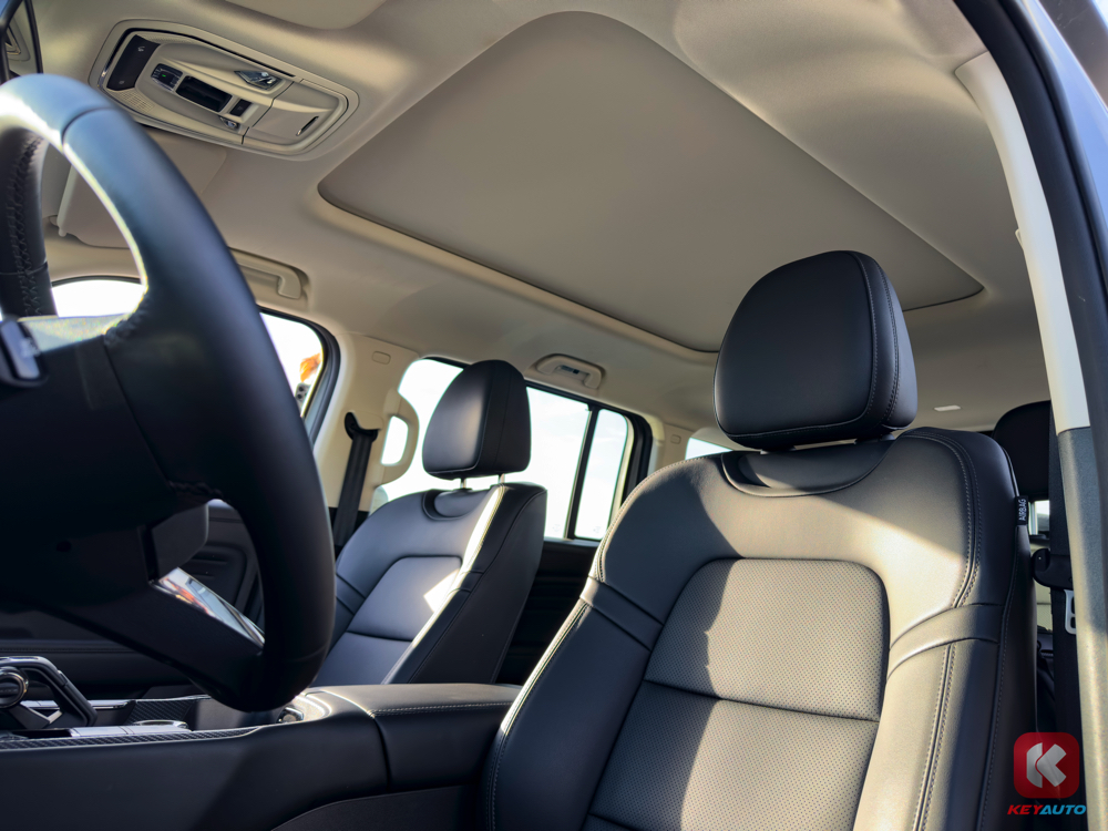来到车内,配备两块大尺寸屏幕,保留诸多的物理按键,副驾驶前方配备了一个粗壮的扶手,整车空间表现不错,配备全景天窗、座椅加热通风功能、电动调节座椅、360 全景镜头和等等。