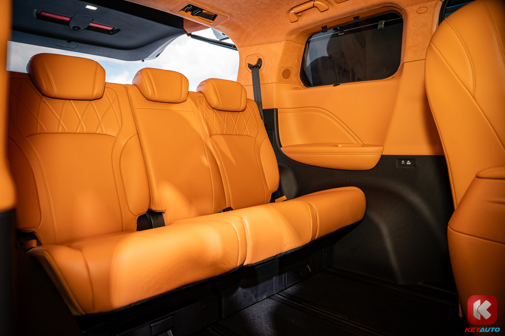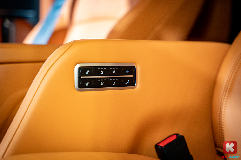 内装处处可见奢华与舒适兼具的配备,包括大尺寸双联屏、手机无线充电面板、皮革座椅、第二排总裁椅、第二排小桌板、座椅加热与通风功能、座椅按摩功能、16 具扬声器 Harmon Kardon 音响系统、12.5L 小型冰箱、全景式天窗等。