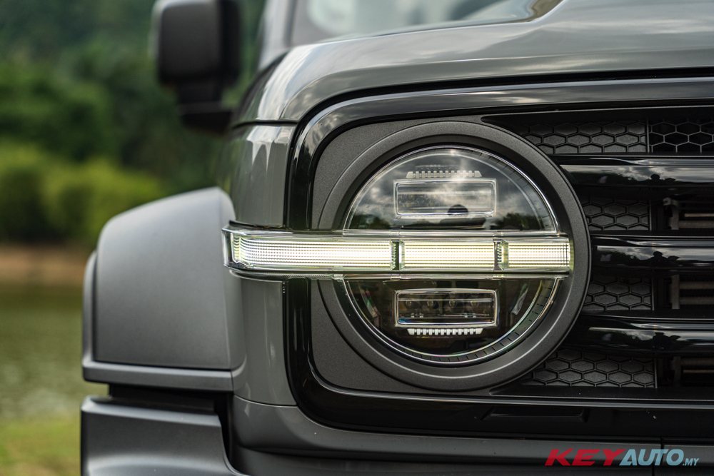 外观与燃油版基本相同,并且搭载 2.0L 四缸涡轮增体验汽油引擎,配上电动马达和 9HAT 变速箱,综合输出 347PS/648Nm。车子配有前后电动差速锁系统、越野巡航系统和Tank Turn 系统。悬架的部分,采用前独立双叉臂,后多连杆配置。