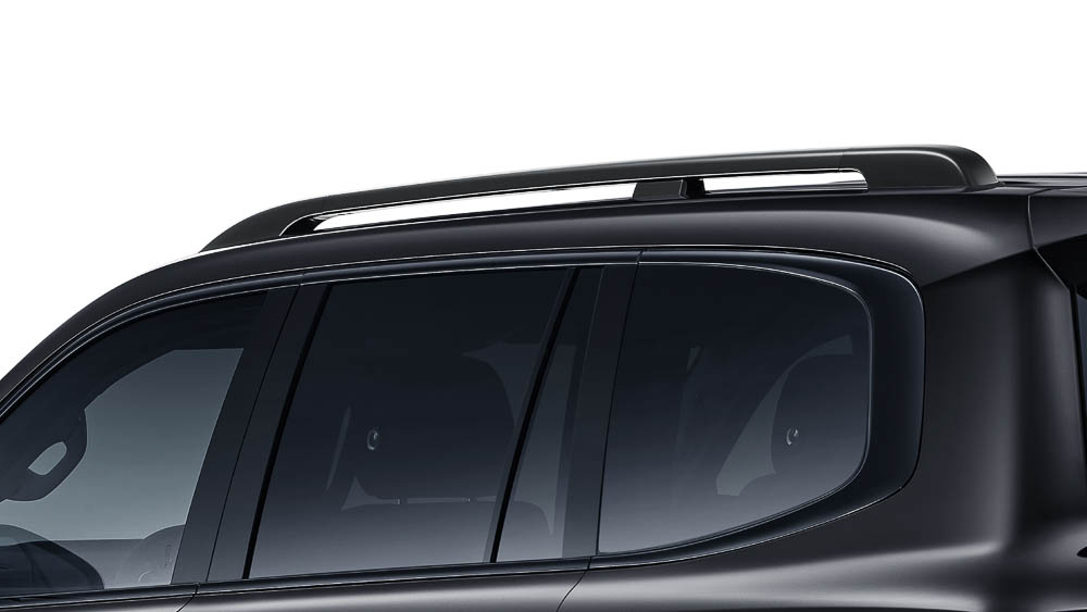 Black electric side steps and roof rails