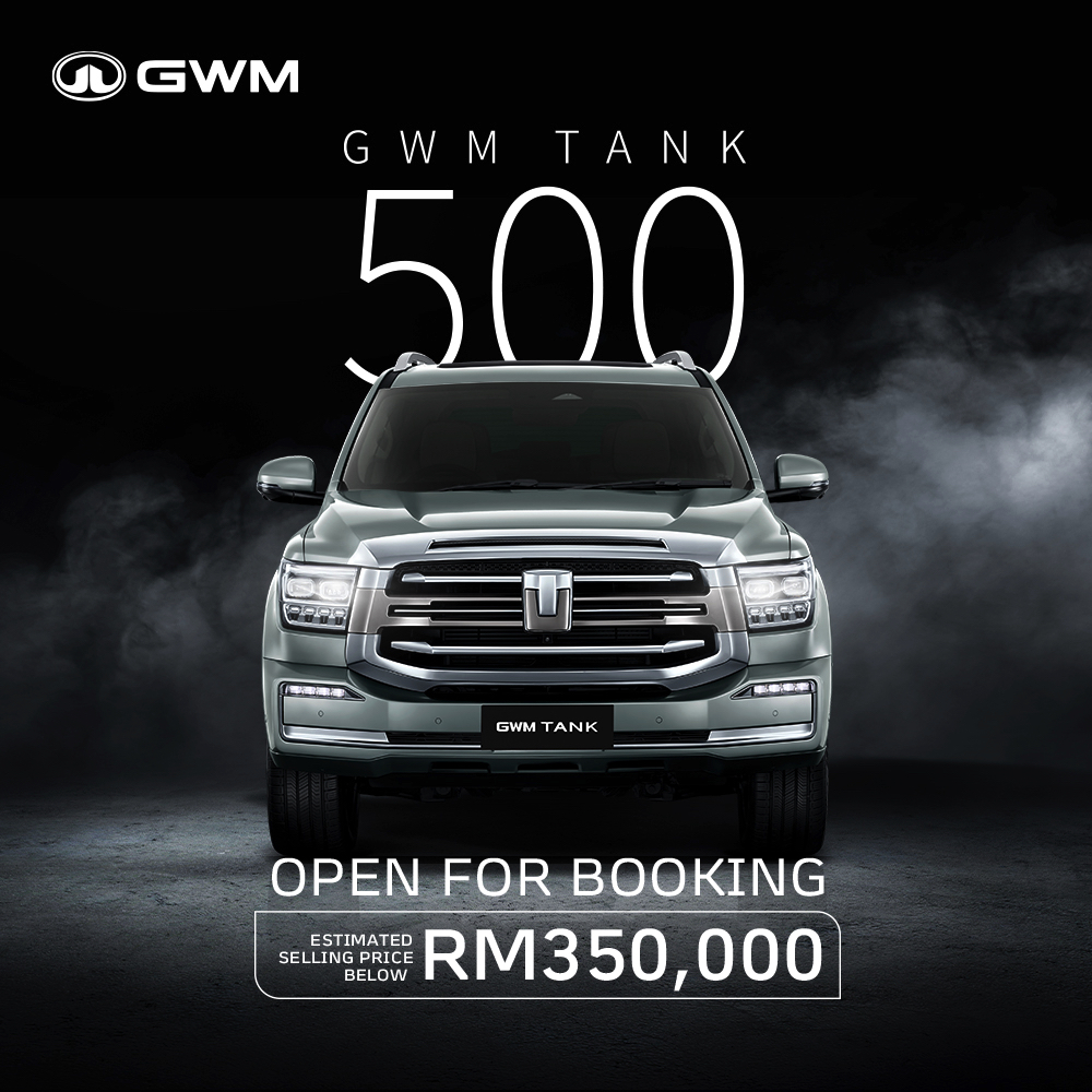 GWM Malaysia 今天宣布,全新 Tank 500(坦克500)正式在本地开放预订,价格不超过 RM350,000,现已可以到指定 GWM 3S 经销店看车。