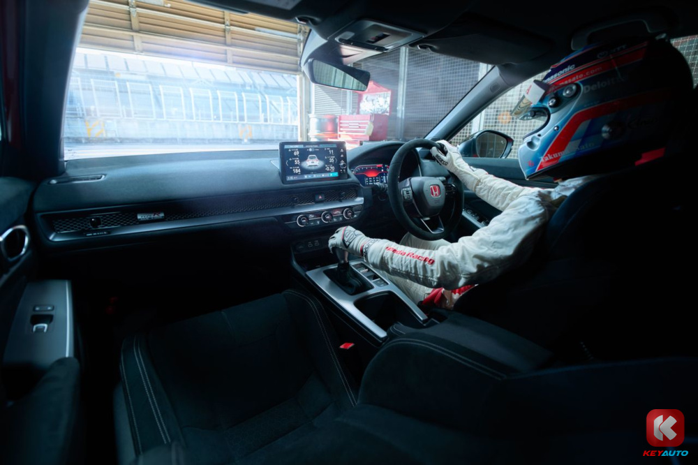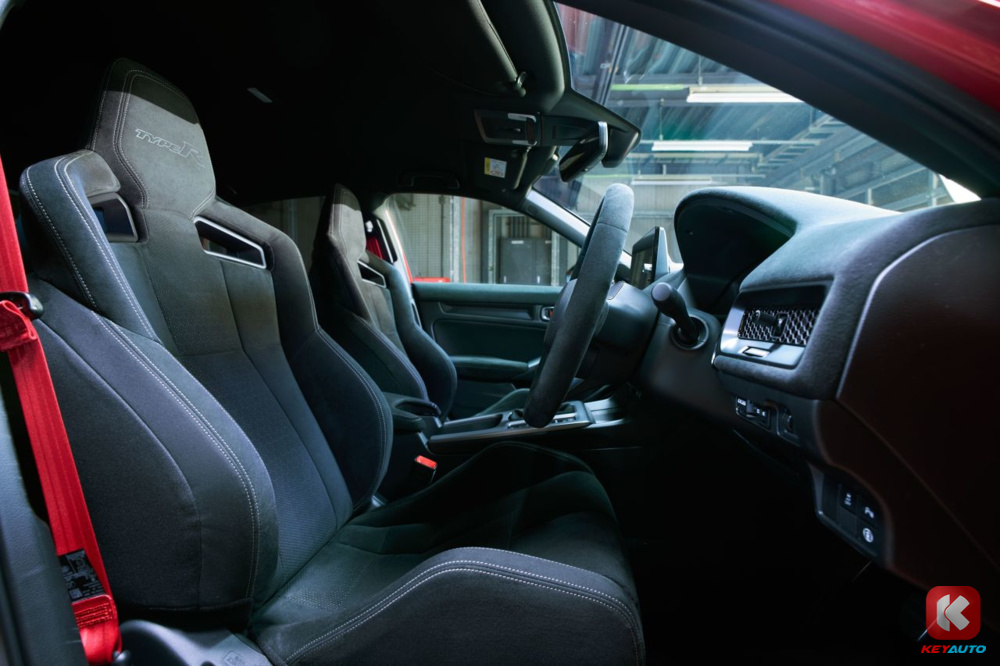 全新 Type R 的改变主要在内饰,红色座椅改为了黑色,地毯也一样换上黑色。仪表板和中控台改为 Ultra Suede 麂皮材质,可有效减少了挡风玻璃的炫光及反射,保持良好的驾驶能见度。中控台的冷气旋钮则改以黑色滚花式设计。冷气出风口和前门车窗面板皆采用黑色元素。