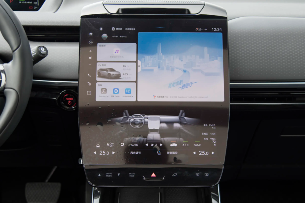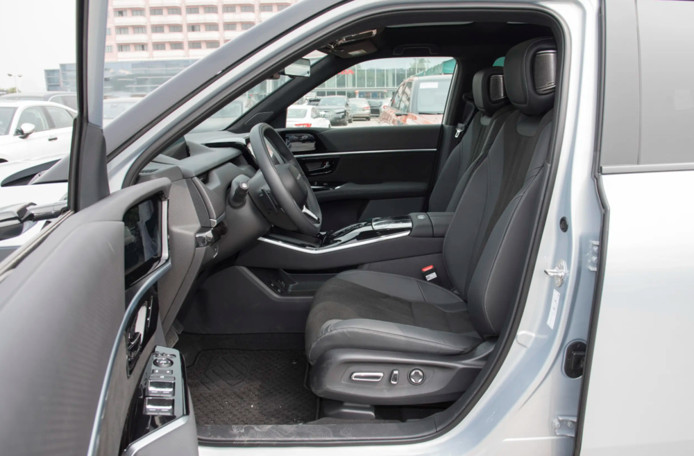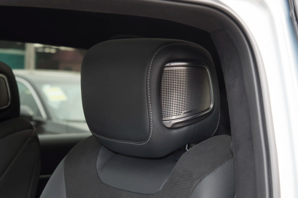 车内设计简约,搭载 9.9 寸悬浮式仪表板、12.8 寸中控萤幕(内建 Snapdragon 8155 芯片)、手机无线充电面板、16 具 Bose 音响系统、车内氛围灯、智能香氛系统等。