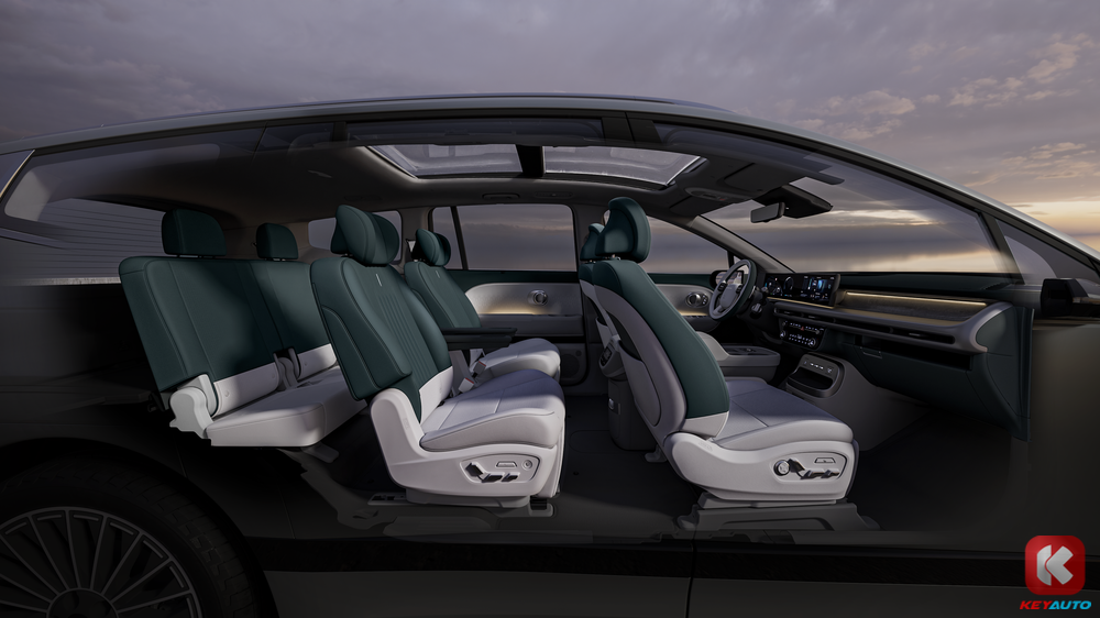 Hyundai Ioniq 9 搭载 24 寸曲面双联屏、8 具扬声器(可选配 14 具扬声器 Bose 高级影响)、第一排和第二排座椅完全倾斜功能、第二排座椅旋转功能等。车子将分为 6 人座和 7 人座两种布局。