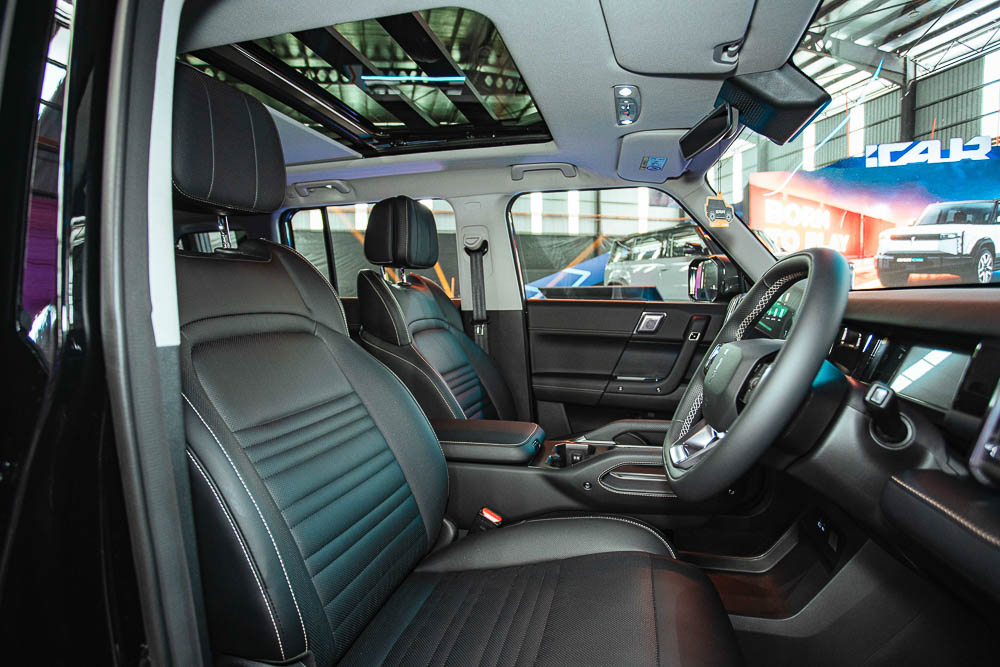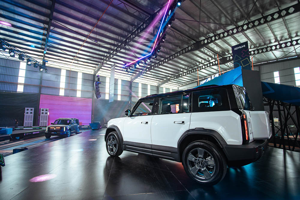 Measuring 4,406 mm long, 1,910 mm wide, and 1,715 mm high, the iCAUR 03 commands attention with its i-BOX design language, angular lines, and distinctive LED lighting. Short overhangs enable impressive off-road credentials, with a 28-degree approach angle, 32-degree departure angle, and 55% gradeability.