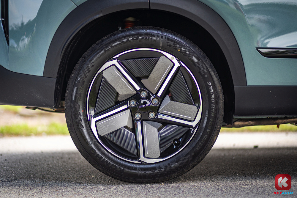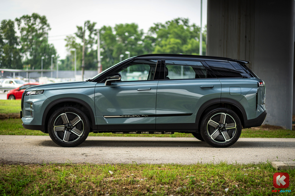 JAECOO J7 PHEV 与燃油版 J7 的外观基本相同,但在轮圈做出了更动,搭载 19 寸全新轮圈,并配有 Carbon Crystal Black、Khaki White 和 Moonlight Silver with Black Roof 三种车身配色供选择。
