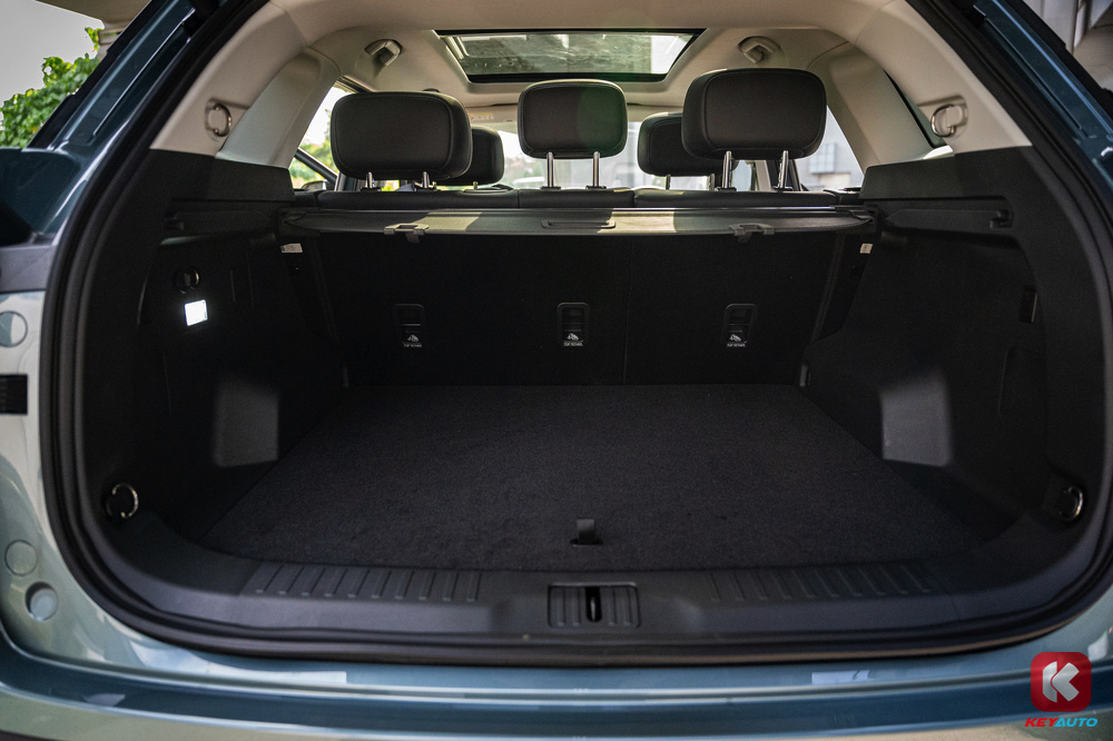 车子配有 60L 油箱,官方油耗数据为 5.99L/100km,号称一箱油可行驶超过 1,000km。在官方实测下,从新加坡出发,到泰国合艾,一箱油(60L)与单次充电,行驶最长距离达 1,427.5km。