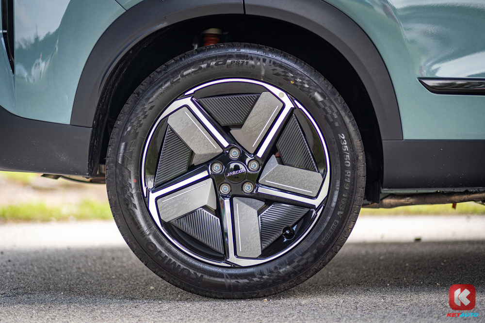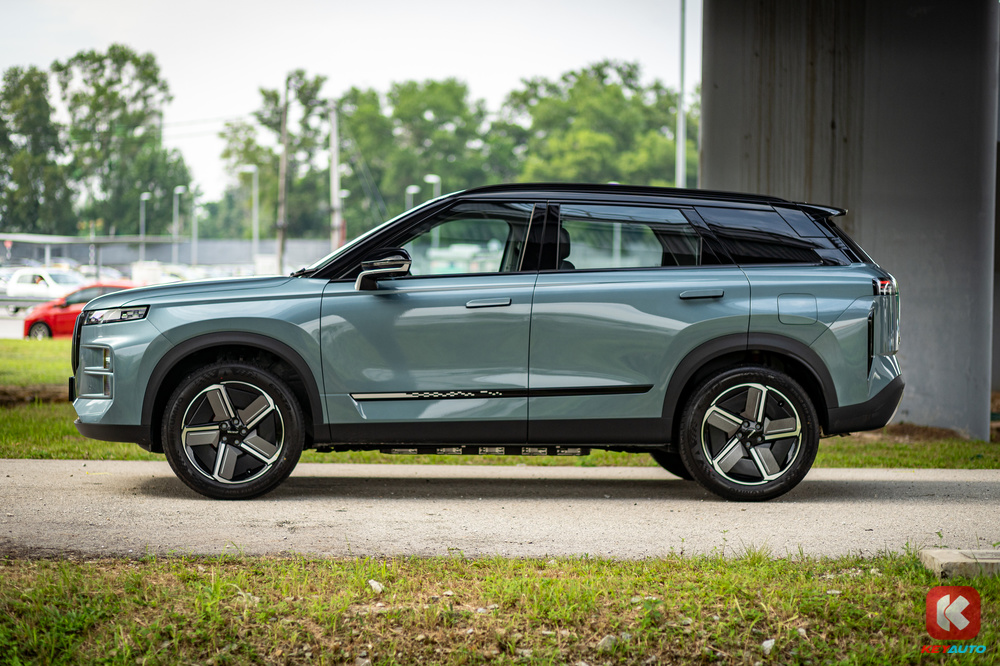 JAECOO J7 PHEV 与燃油版 J7 的外观基本相同,但换上 19 寸全新轮圈,并配有 Carbon Crystal Black、Khaki White(仅限 100 辆) 和 Moonlight Silver with Black Roof 三种车身配色供选择。