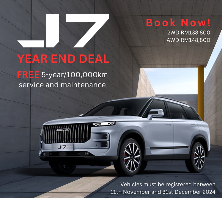 今年7月在本地发布的 Jaecoo J7 推出年终优惠,即日起至 2024 年 12 月 31 日注册的 Jaecoo J7 可获 5 年或 100,000km 免费保养(含零件和人工)。Jaecoo J7 新车车主原就可享有 7 年或 150,000km 原厂保修,而早鸟优惠下的车主可享有 10 年或 1,000,000km 引擎保固。