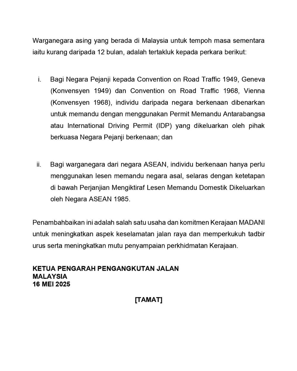JPJ 此举是为了提高道路安全,特别是行驶在马来西亚路上的外国人。更多最新交通资讯,敬请锁定 KeyAuto.my