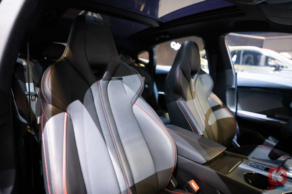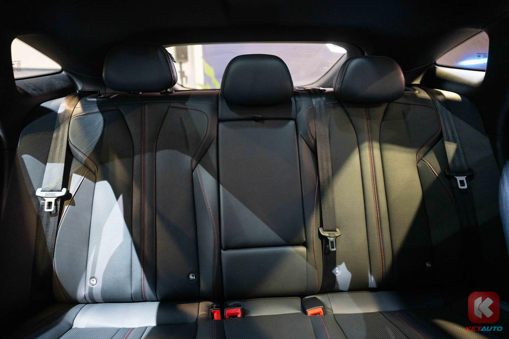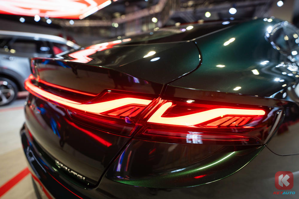 Accompanying the fastback coupe design on the exterior is an Adaptive Electric Spoiler, frameless doors, 19-inch alloy wheels, Variable Sport Exhaust System, LED rear light strip and red brake caliper.