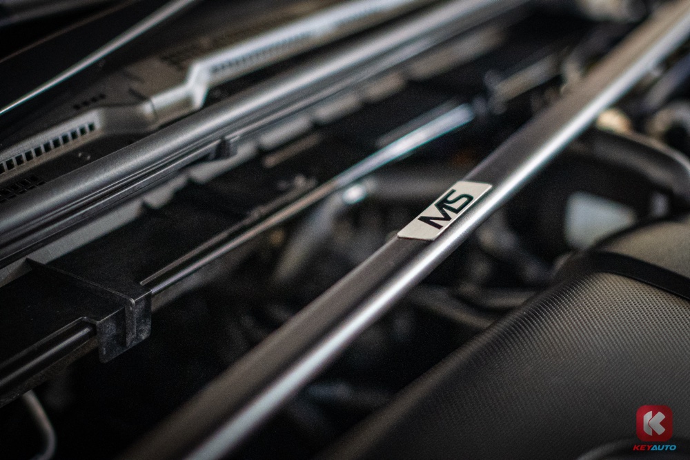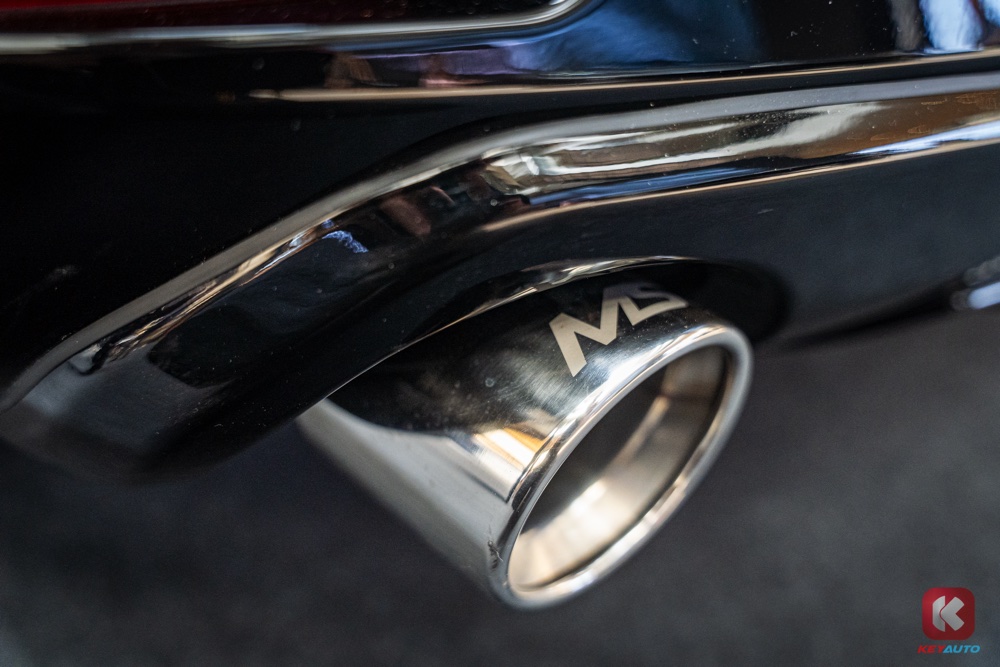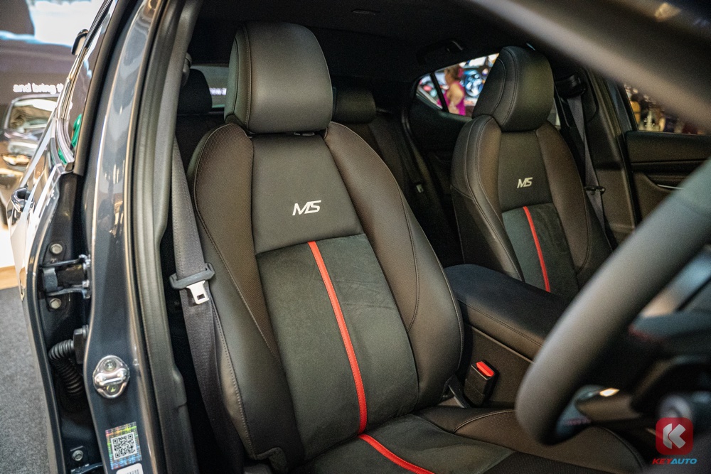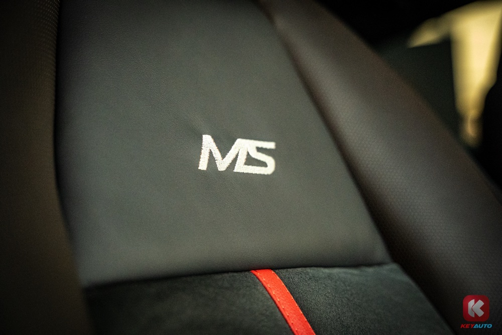 车内采用赛车风格设计,植入红色作为点缀,包括方向盘 12 点钟方向和座椅。前排座椅也设有彰显身份的 MS 字样。