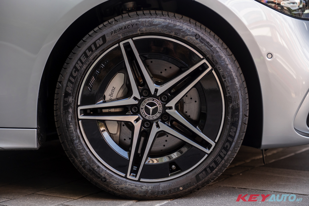 The exterior of the C350e closely resembles the existing C300 model, especially with its AMG Line styling. It features the iconic Mercedes-Benz pattern grille with a chrome star design and 18-inch AMG 5-spoke light-alloy wheels.