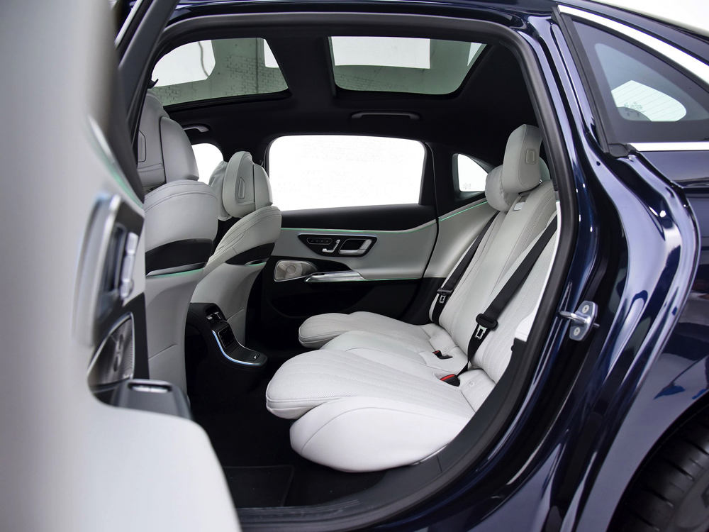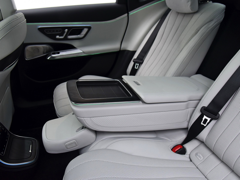 后排方面,长轴版 E-Class L 拥有专属的后排豪华舒适增配,包括座垫加长、头枕加热、座椅腿托电动可调、后排环绕氛围灯、C 柱隐私三角窗等功能。
