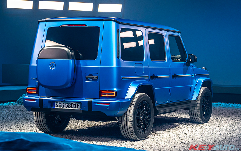纯电动 Mercedes-Benz G580,这里俗称 “电 G”,基于 Mercedes-Benz 旗下最经典的车款 G-Class 外形打造,外观造型延续 G wagon 极具辨识度的设计,并加入更多象征科技感的新设计,如封闭式前格栅,低风阻大饼轮毂和更多 LED 灯,而尾部那极具象征性的背包备胎也被更换成储物背包。