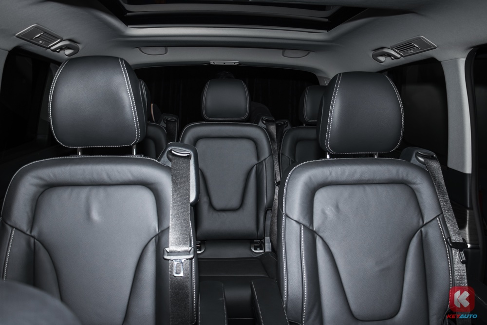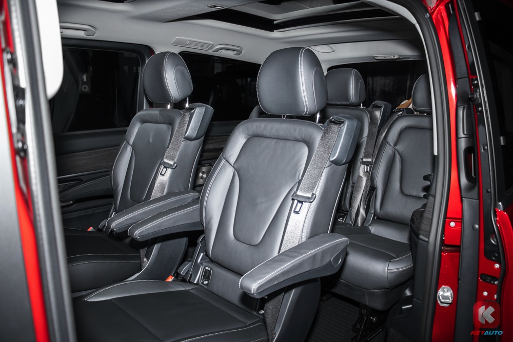 小改款 EQV 300 Avantgarde 是 7 人座 MPV,采用 2+2+3 布局。车身尺寸为 5,140mm x 1,918mm x 1,923mm,轴距为3,200mm。其长度和轴距都比 Toyota Alphard 更长。