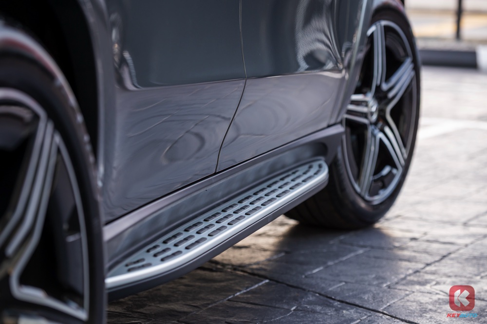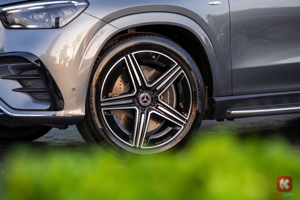 GLE 400 e 4MATIC 配备了 AMG Line 外观套件,包括 镀铬星芒钻石格栅、AMG 前保险杆、AMG 侧裙、扩散器造型的 AMG 后保险杆。车子搭载 Multibeam LED 头灯(含主动高灯辅助功能),足下则是 21 寸 AMG 五幅轻合金轮圈。
