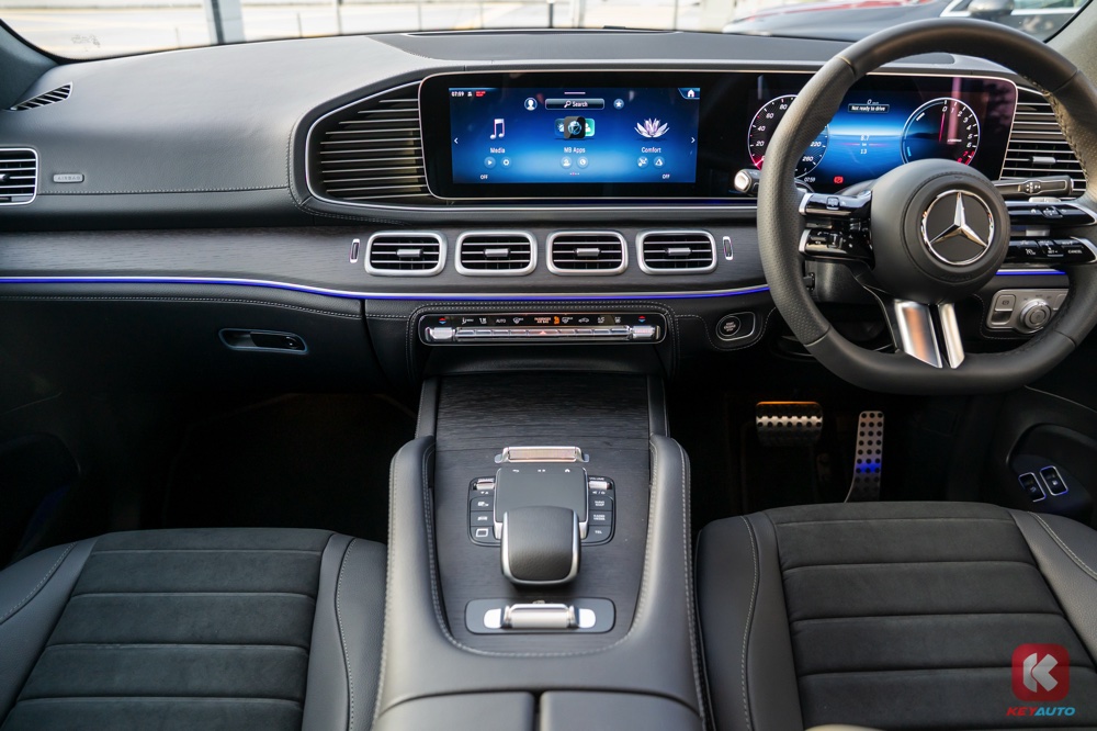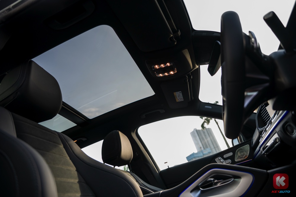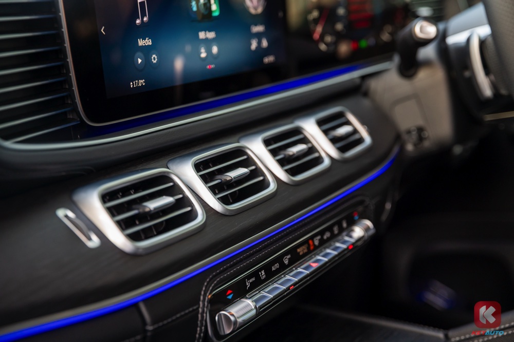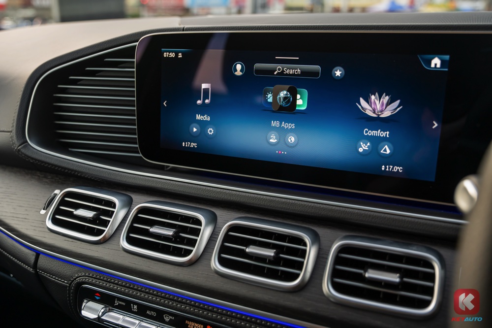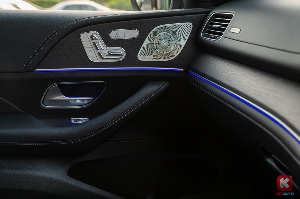 车内同时标配了两个 12.3 寸显示屏(内建第二代 MBUX 操作系统)、无线 Apple CarPlay 和 Android Auto、Thermotronic 自动恒温冷气系统、手机无线充电面板、前排座椅加热功能、64 色车内氛围灯、双遮阳帘、后座车窗电动遮阳帘、后座电动调节功能、13 具扬声器 Burmester 3D 环绕音响系统等。