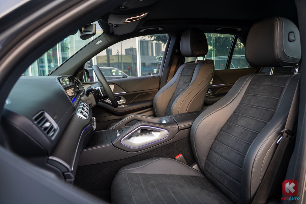 车内同样采纳了 AMG Line 配件,包括 Artico 人造皮革和 Microcut 纤维材质座椅、Artico 包覆仪表板和车门饰板、Nappa 皮革平底多功能方向盘、AMG 不锈钢运动踏板、AMG 地毯和Mercedes-Benz 照明门槛。