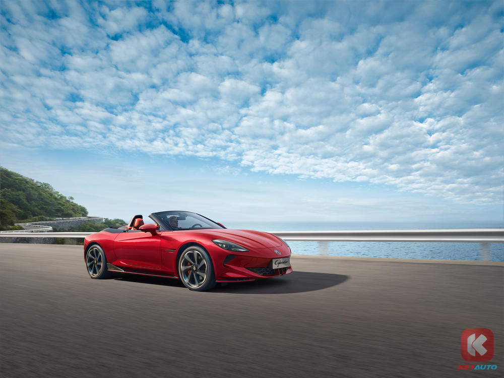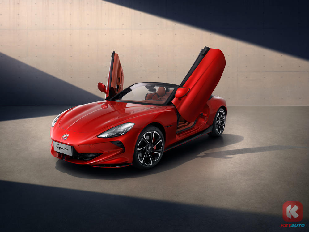 The MG Cyberster is only available in one variant with distinct electric frameless scissor door and a broad, low-profile silhouette with a retractable soft top.