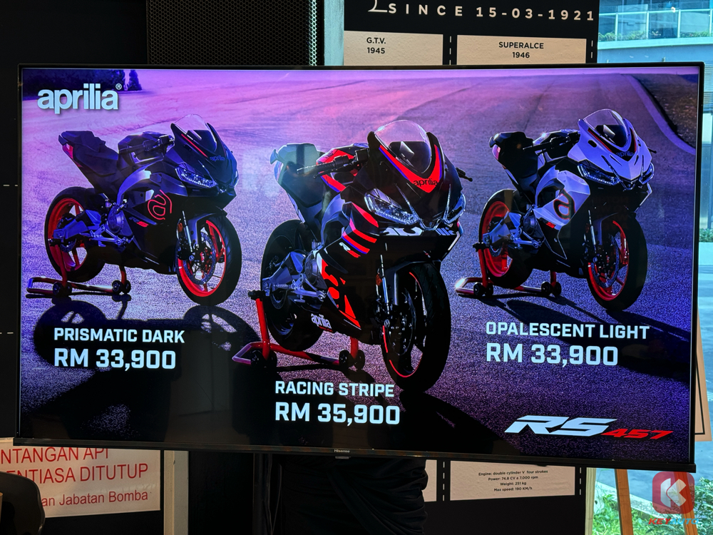 全新 Aprilia RS 457 在本地将提供 3 个版本,其中 Prismatic Dark 和 Opalescent Light 价格同样是 RM33,900,而 Racing Stripes 则开价 RM35,900。